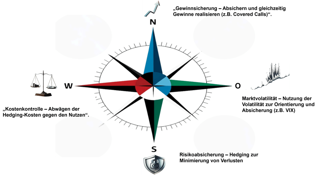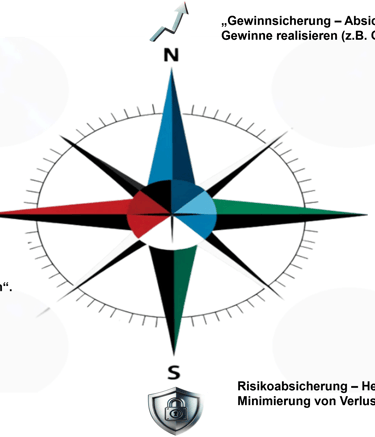 „Im Norden des Hedging-Kompasses geht es um die Gewinnsicherung – bestehende Gewinne absichern und trotzdem an Kurssteigerungen teilhaben.